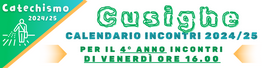 Giorno e orario degli incontri del CATECHISMO TRADIZIONALE: Lunedì dal 2° all'8° anno ogni 15 giorni e un incontro al mese, per il 1° anno di domenica pomeriggio una volta al mese da novembre ad aprileOrario: dalle 14.30 alle 15.30 per 2°, 3° e 4° anno, dalle 16.00 alle 17.00 per 6°, 7° e 8° anno e per il 5° anno possibilità di fare alle 15.30 previo accordo con la catechista.PRIMO APPUNTAMENTO: Lunedì 20 OttobreGiorno e orario degli incontri del KATECINEPIZZA: un incontro al mese: sabato dalle 17.30 alle 21.00 e domenica con S. Messa alle 18.30PRIMO APPUNTAMENTO: Sabato 18 e Domenica 19 Ottobre